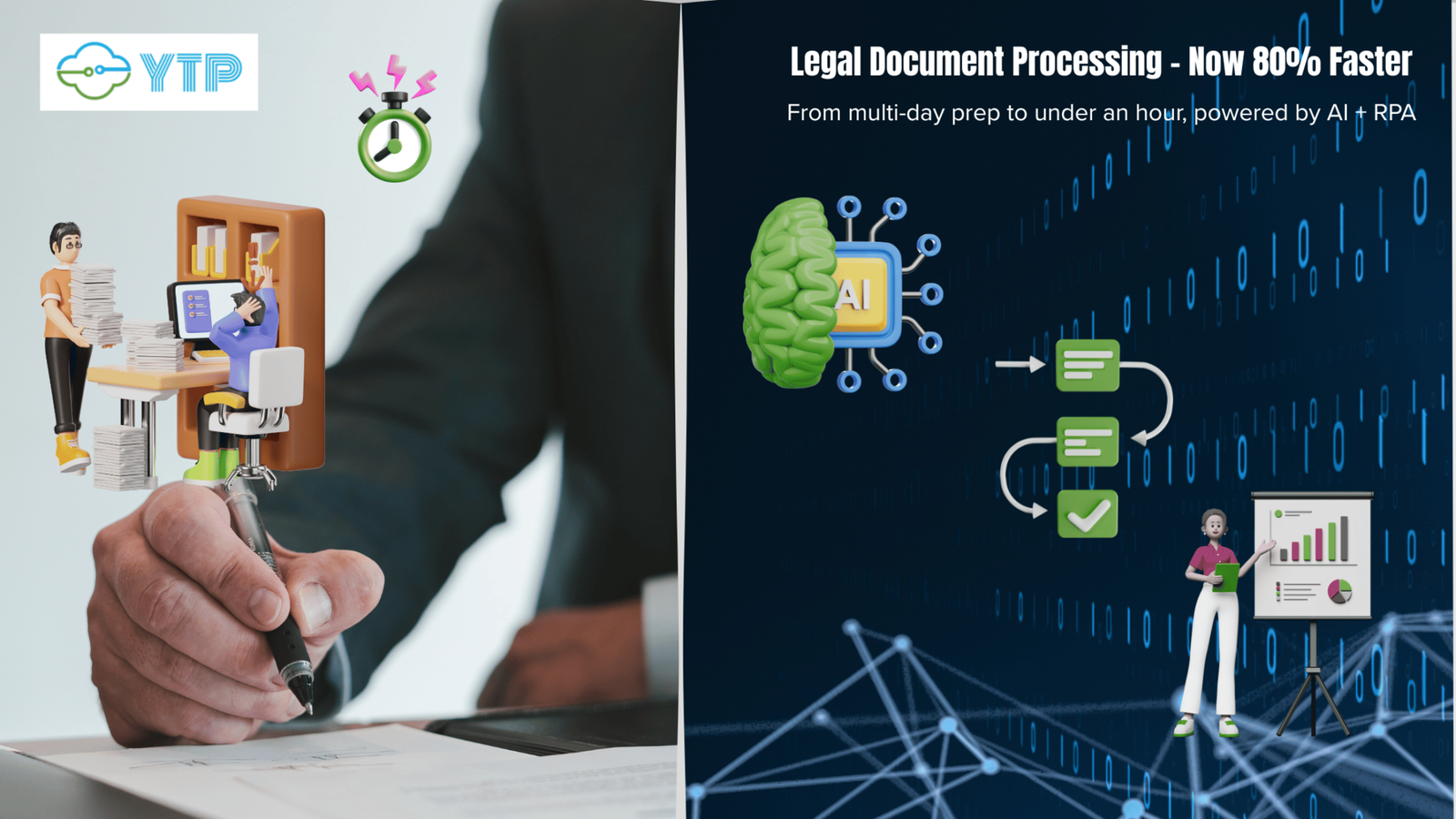 Impact: Document turnaround time dropped by over 80%. What once took two to three days now takes less than an hour—freeing up teams to take on more work and expand their client base.